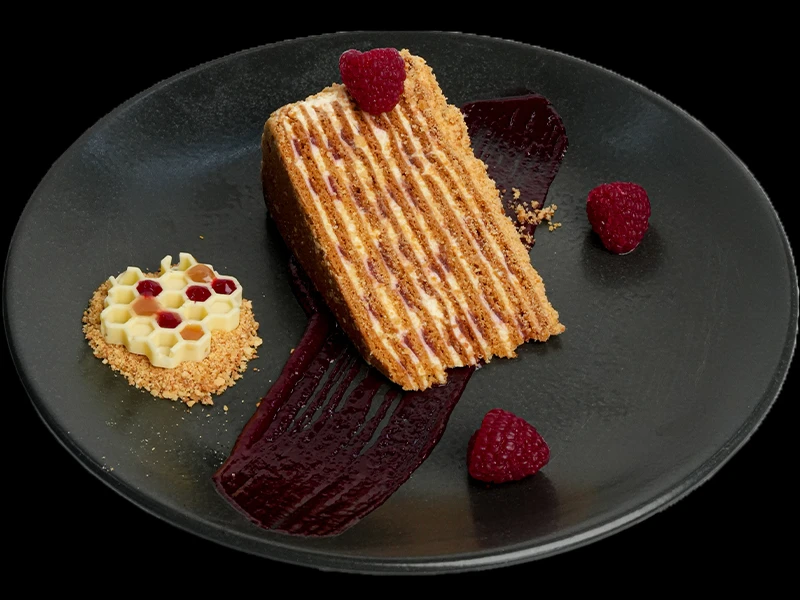 Медовик с малиной